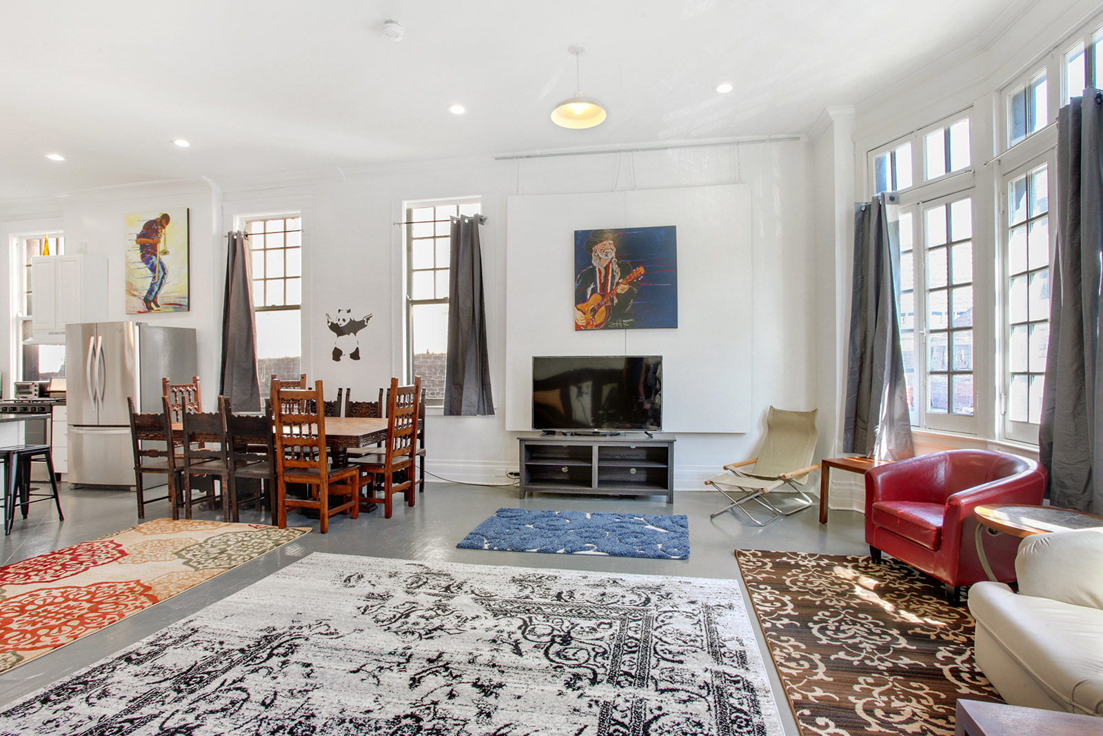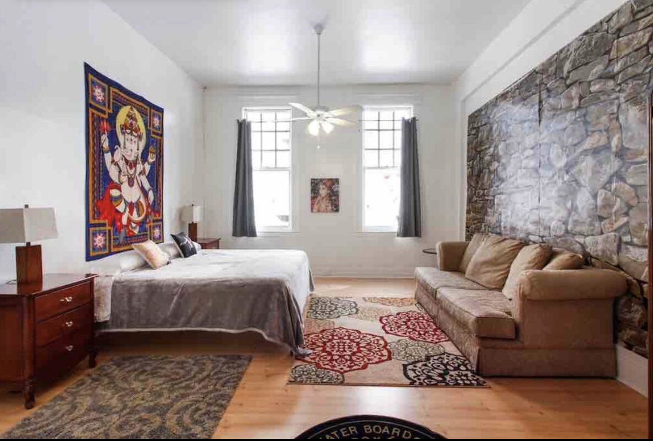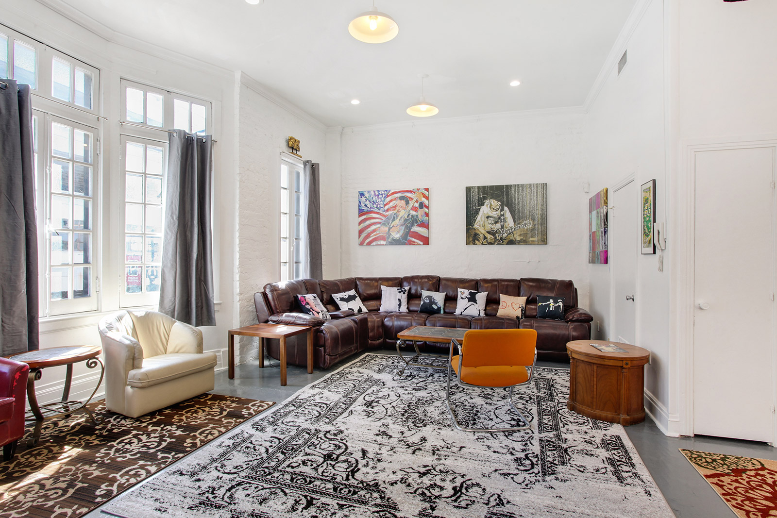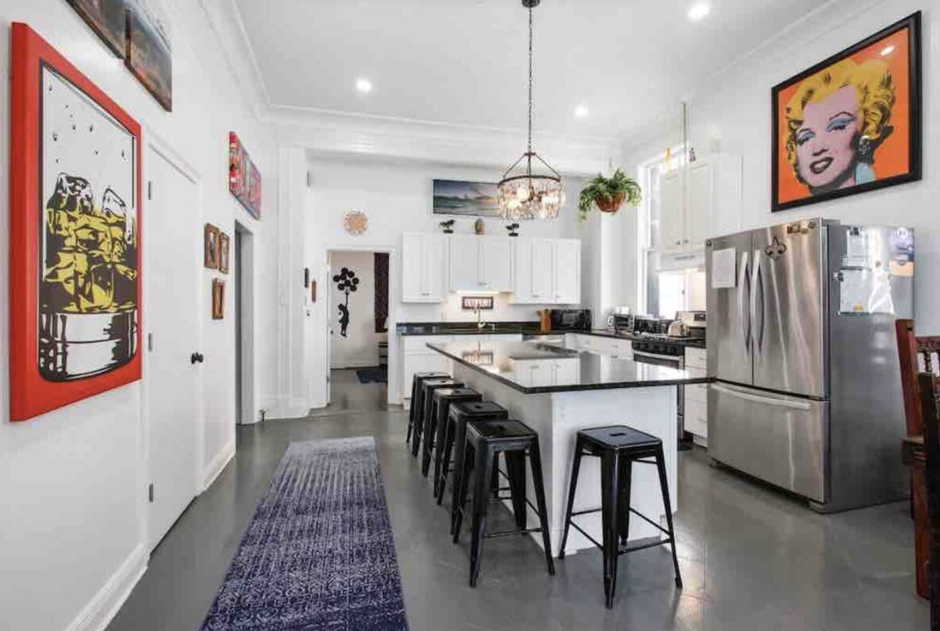 Location, location, location!! This huge & awesome property, is located on the second floor, one flight of stairs above a storefront art gallery in the heart of the Central Business District. It boasts 6 SUPER SPACIOUS BEDROOMS, most have a large couch, and can easily sleep from 14-16 guests. There are 5 FULL BATHS, 3 are within bedrooms and the other 2 are shared a few steps down the hall. The half bath is in the kitchen/lounge area for group convenience. This 4000+ sq ft unit is perfect for large families, or groups of up to 16. We have hosted many business groups in town for conventions. It's a nice walk to the Convention Center and the Superdome & Smoothie King Center. FULLY RENOVATED and stocked gourmet kitchen with dining table and granite island - plenty of seating, huge lounge with leather sectional and multiple seating for the whole group, 5 King bedrooms (3 also have additional twin beds), plus one with 2 queens. There are 5 full bathrooms, 3 en suite, and also a half bath off the kitchen.