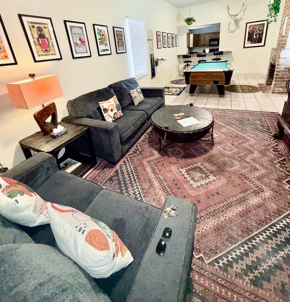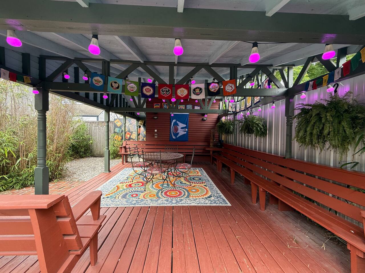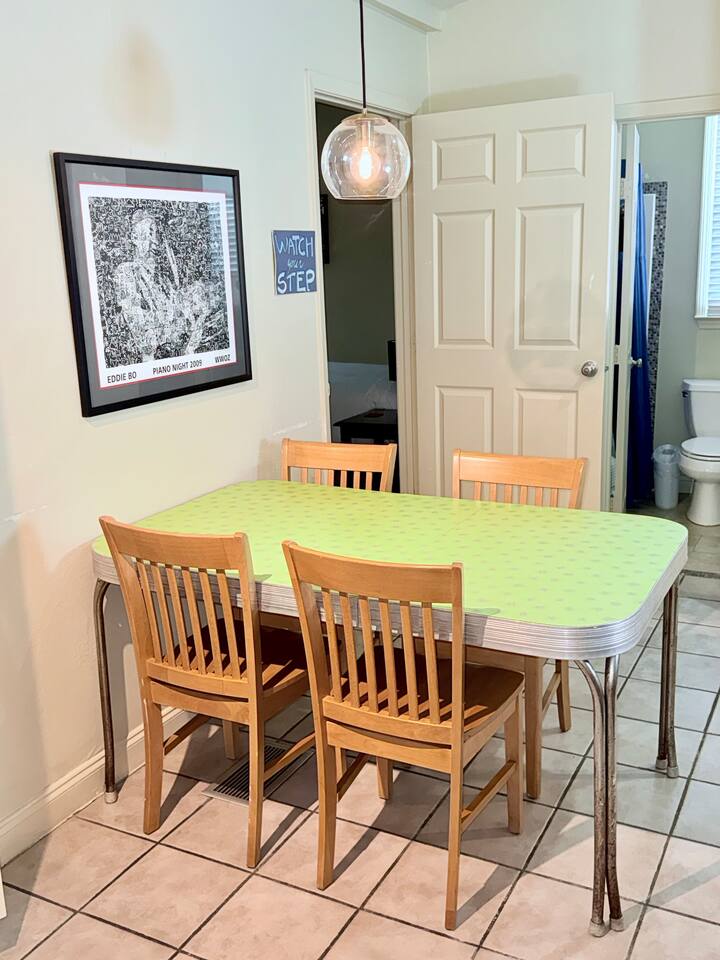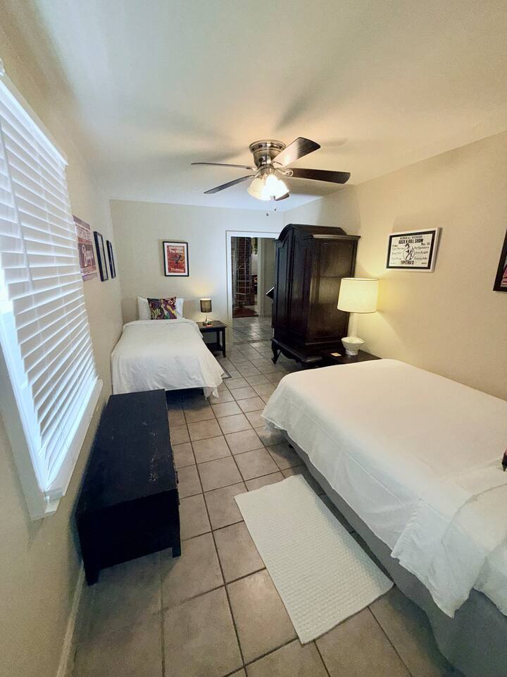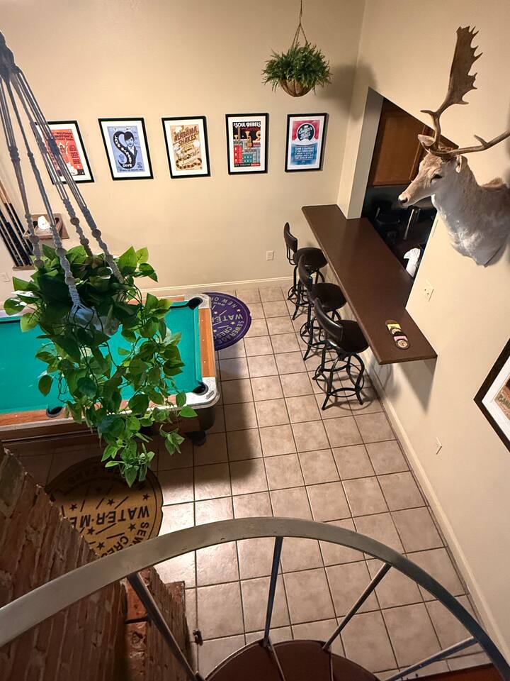 Large home with security and ultimate privacy. Large outdoor spaces for entertaining; rooftop deck, outdoor bar, large rain proof pergola with buffet/ seafood boil space and built-in, wrap-around bench seating. Overdo it last night in the quarter? Take a night off from the revelry and enjoy the show from the comfort of any one of our outdoor spaces after a big dinner and tree lined walk. Or grab a pizza and beer, then head outside for a chill night with friends. Listen to the show and enjoy the sounds of the audience without the crowds or the entrance fee! Out all night but not ready to go home? Enjoy your second wind at New Orleans best 24-hour bar, THE iconic Ms. Mae’s, within stumbling distance! Strong drinks, poker machines, pool tables, foosball tables, people watching and garden seating. International cuisine / culinary destination- all within walking distance! From Ramen at Nomiya to upscale but cozy, romantic Mister Mao. Best Mediterranean just blocks away; casual family owned and operated Saj or high-end Shaya. Theo’s Neighborhood Pizza or homemade pasta dishes and modern Italian at Osteria Lupo. Best tacos and tequila, just footsteps away! Old school seafood at Superior Seafood and Oyster Bar or step back in time at Pascals Manale for a classic dinner to remember! And don’t forget the countless coffee shops and must have French bakery items. The French Quarter has nothing on Uptown if you want a quality New Orleans dining experience. Eat like a local! - Fully furnished, 2300 sqft, 4 Bedrooms, 3.5 baths; - Master Suite, full bath. Private entrance and kitchenette, opening to back porch and courtyard. - Queen bedroom with private bathroom - Double bedroom - Queen loft with opening to large rooftop deck, overlooking our bamboo filled back yard on one side and French Doors with a view of the parade route during Carnival time. Cast your eyes further from both the deck and French doors to the city skyline. Perfect for enjoying cocktails, listening to the music at Tipitina’s and the people milling about on the sidewalk below. - Living room with entertainment/sound system, Pool table and TV. - Well-appointed kitchen with combined dining space. - Open concept music room with jukebox box and piano. - Courtyard space includes back porch with rocking chairs and outdoor bar, separate large pergola with built-in, wrap-around bench seating space, ideal for seafood boils or BBQ’s. Capacity: Sleeps up to 12.