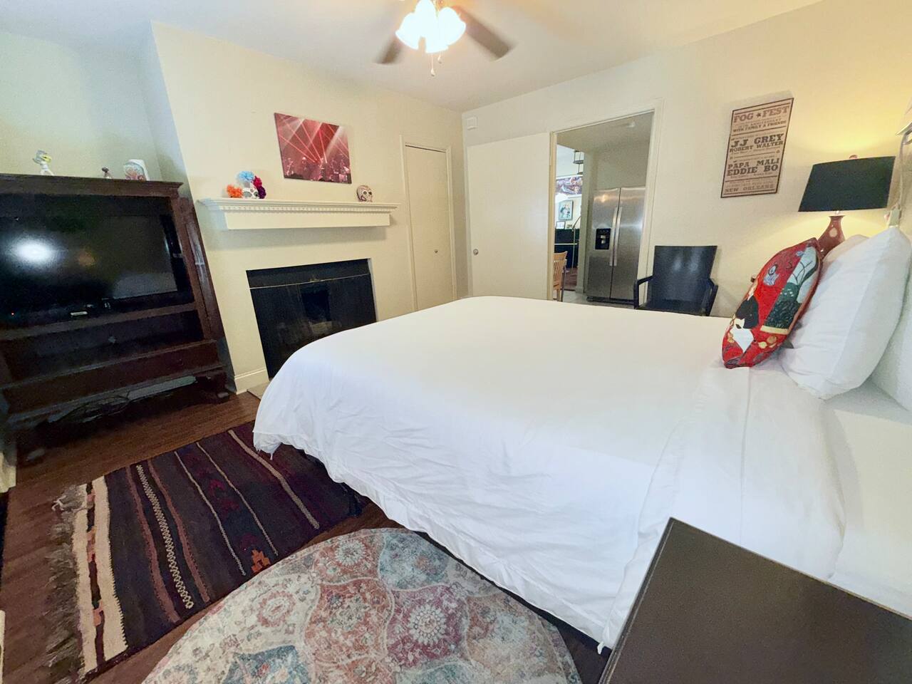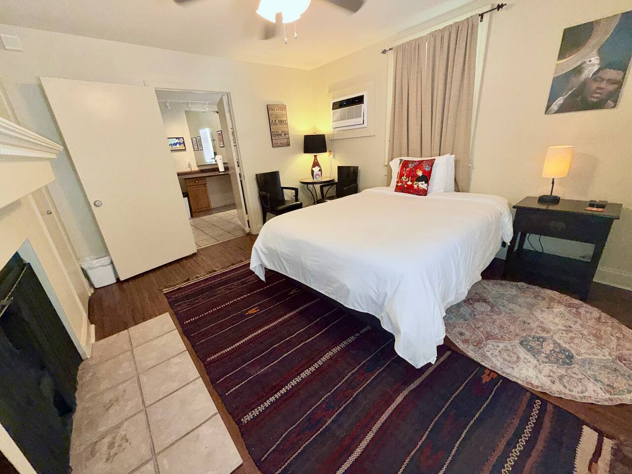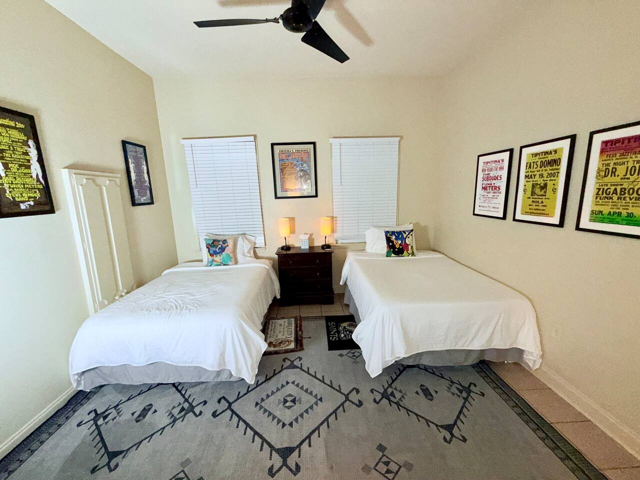 Large home with security and ultimate privacy. Large outdoor spaces for entertaining; rooftop deck, outdoor bar, large rain proof pergola with buffet/ seafood boil space and built-in, wrap-around bench seating. Overdo it last night in the quarter? Take a night off from the revelry and enjoy the show from the comfort of any one of our outdoor spaces after a big dinner and tree lined walk. Or grab a pizza and beer, then head outside for a chill night with friends. Listen to the show and enjoy the sounds of the audience without the crowds or the entrance fee! Out all night but not ready to go home? Enjoy your second wind at New Orleans best 24-hour bar, THE iconic Ms. Mae’s, within stumbling distance! Strong drinks, poker machines, pool tables, foosball tables, people watching and garden seating. International cuisine / culinary destination- all within walking distance! From Ramen at Nomiya to upscale but cozy, romantic Mister Mao. Best Mediterranean just blocks away; casual family owned and operated Saj or high-end Shaya. Theo’s Neighborhood Pizza or homemade pasta dishes and modern Italian at Osteria Lupo. Best tacos and tequila, just footsteps away! Old school seafood at Superior Seafood and Oyster Bar or step back in time at Pascals Manale for a classic dinner to remember! And don’t forget the countless coffee shops and must have French bakery items. The French Quarter has nothing on Uptown if you want a quality New Orleans dining experience. Eat like a local! - Fully furnished, 2300 sqft, 4 Bedrooms, 3.5 baths; - Master Suite, full bath. Private entrance and kitchenette, opening to back porch and courtyard. - Queen bedroom with private bathroom - Double bedroom - Queen loft with opening to large rooftop deck, overlooking our bamboo filled back yard on one side and French Doors with a view of the parade route during Carnival time. Cast your eyes further from both the deck and French doors to the city skyline. Perfect for enjoying cocktails, listening to the music at Tipitina’s and the people milling about on the sidewalk below. - Living room with entertainment/sound system, Pool table and TV. - Well-appointed kitchen with combined dining space. - Open concept music room with jukebox box and piano. - Courtyard space includes back porch with rocking chairs and outdoor bar, separate large pergola with built-in, wrap-around bench seating space, ideal for seafood boils or BBQ’s. Capacity: Sleeps up to 12.